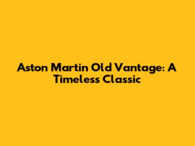The Aston Martin Old Vantage: A Legacy of Excellence