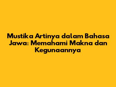 Mustika artinya dalam bahasa Jawa adalah sebuah konsep yang kaya akan makna dan memiliki tempat yang istimewa dalam budaya dan kepercayaan Jawa. Mustika bukan hanya sekadar benda, tetapi juga simbol dari kekuatan spiritual, keberuntungan, dan perlindungan. Memahami mustika artinya dalam bahasa Jawa berarti memahami sebagian dari kekayaan budaya dan spiritual masyarakat Jawa. Meskipun kepercayaan terhadap mustika bersifat subjektif dan tidak dapat dibuktikan secara ilmiah, namun kepercayaan ini tetap hidup dan terus diwariskan dari generasi ke generasi. Dengan memahami makna, jenis, dan manfaat mustika, kita dapat lebih menghargai warisan budaya yang kaya ini.