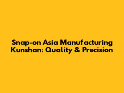The Impact of Snap-on Asia Manufacturing Kunshan